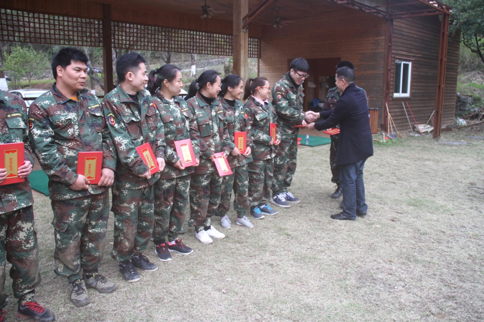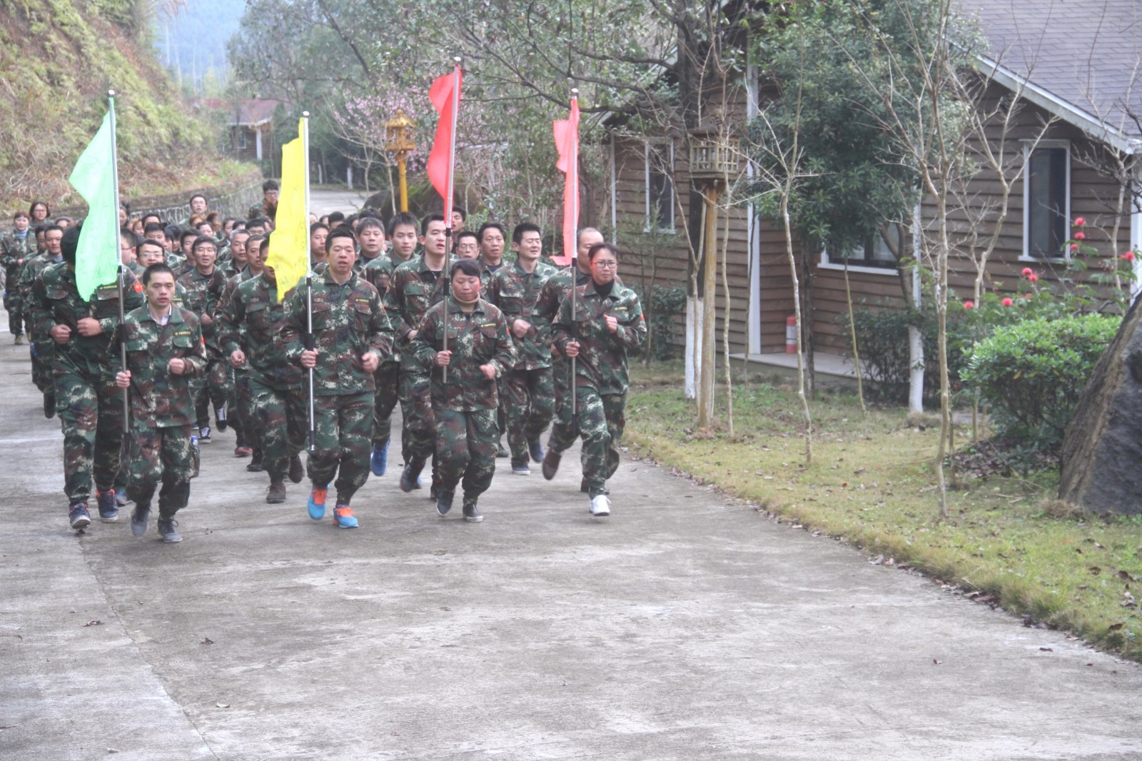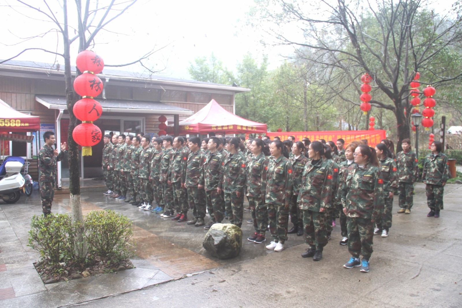 第一天團(tuán)隊(duì)統(tǒng)一著裝迷彩服,進(jìn)行團(tuán)隊(duì)組建并建立統(tǒng)一的團(tuán)隊(duì)目標(biāo)。參加心情撲克牌、高空抓桿、盜夢(mèng)空間、七巧板等項(xiàng)目。