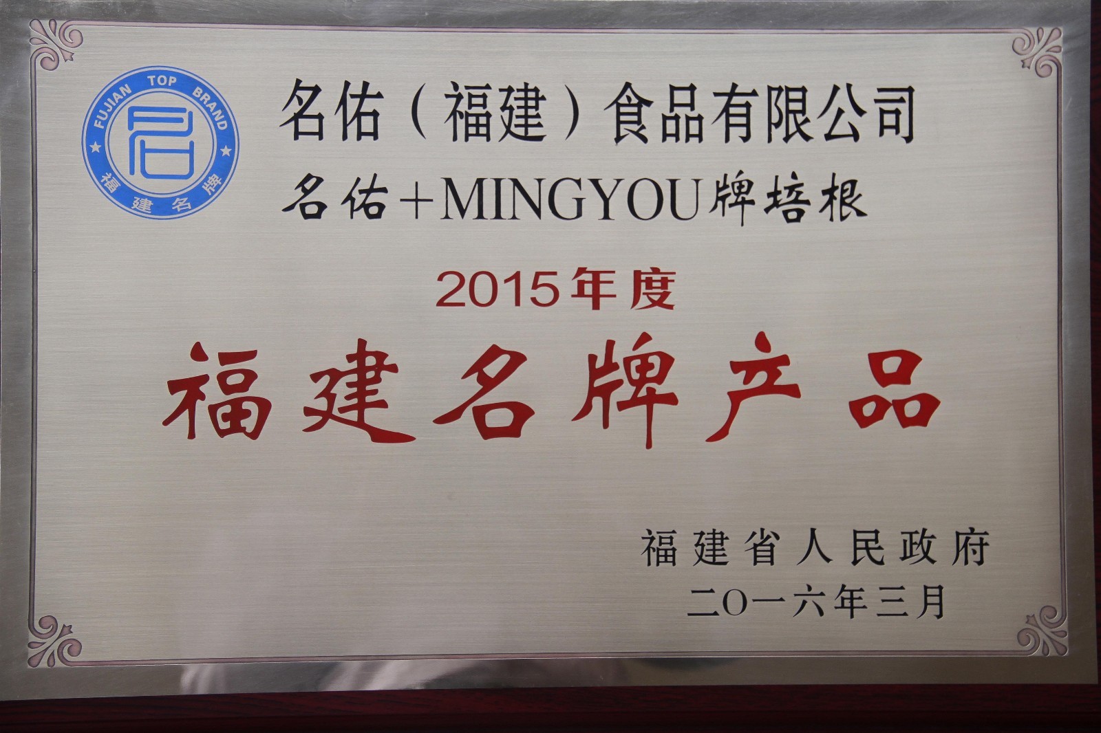 熱烈祝賀我公司“名佑”商標(biāo)在29類豬肉食品;肉;腌臘肉商品上為福建省著名商標(biāo)。